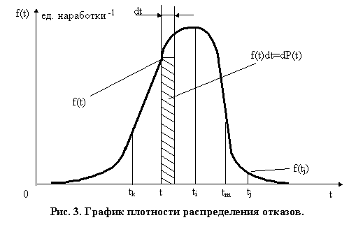 ПРО по существу является плотностью распределения случайной величины T наработки до отказа объекта. Один из возможных видов графика f(t) приведен на рис. 3 .