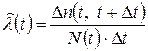 т.е. ПРО есть отношение числа объектов, отказавших в интервале наработки [t, t+ D t] к произведению общего числа объектов n на длительность интервала наработки D t .