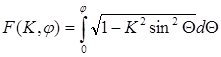 прямує до нуля; його позначають Застосування точного рiвняння Ейлера-Бернулi для великих деформацiй бруса призводить до еліптичних інтегралів. Еліптичний інтеграл першого порядку (роду) записується у вигляді: