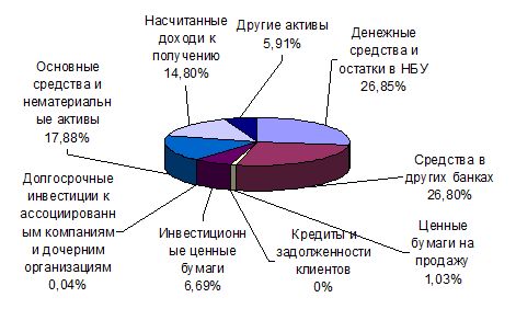 Рассмотрим структуру баланса ОАО «Сбербанк» за 2005г. (табл.2.20). Анализируя, графически можно представить процентные соотношения состава активов баланса на рис. 2.1. Рассмотрим структуру баланса ОАО «Сбербанк» построив диаграммы.
