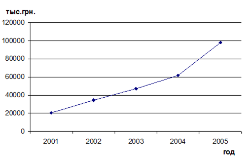 Рисунок 2.3. Динамика изменения суммарных активов «Сбербанка» в 2001- 2005 г.г. Можно обратить внимание на то, что суммарные активы выросли на 376 % и составили в 2005 г. 98 425 тыс. грн. Таблица 2.20. Основные показатели ОАО ОАО «Сбербанк» 2001-2005 г.г.