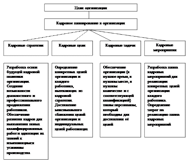 Рис. 1.1. Место кадрового планирования в системе управления работой с персоналом в организации Цели и задачи кадрового планирования укрупненно можно представить в виде следующей схемы (рис. 1.2).