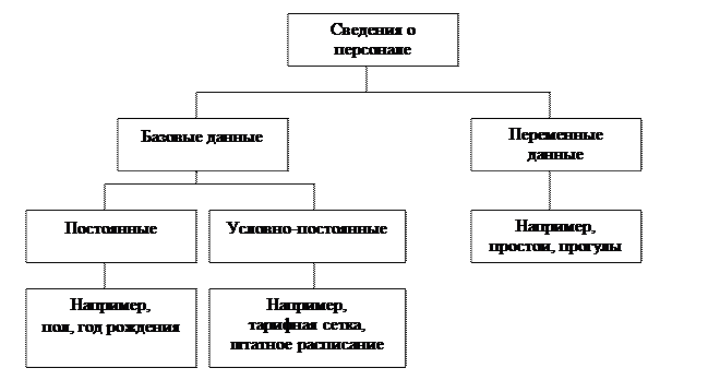 Рис. 2.1. Структура типового оперативного плана работы с персоналом в организации Для его разработки необходимо с помощью специально составленных анкет собрать следующую информацию: сведения о постоянном составе персонала (имя, отчество, фамилия, место жительства, возраст, время поступления на работу и др.); о структуре персонала (квалификационная, половозрастная, национальная структура; удельный вес инвалидов, удельный вес рабочих, служащих, квалифицированных рабочих и т.д.); о текучести кадров; о потерях времени в результате простоев, по болезни; о продолжительности рабочего дня (полностью или частично занятые, работающие в одну, несколько или ночную смену, продолжительность отпусков); о заработной плате рабочих и служащих (ее структура, дополнительная заработная плата, надбавки, оплата по тарифу и сверх тарифа); об услугах социального характера, предоставляемых государством (расходы на социальные нужды, выделяемые в соответствии с законами, тарифными договорами, добровольно). Анкеты следует составлять таким образом, чтобы наряду с производственными целями они могли служить и кадровому планированию. Сведения о персонале можно систематизировать и представить в виде схемы, изображенной на рис. 2.2.