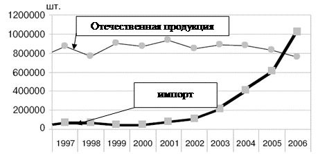 Рис. 4. Динамика производства мебели в России 1.3 Формирование ключевых факторов успеха Конкурентные преимущества – это уникальные осязаемые и неосязаемые ресурсы, которыми владеет предприятие, позволяющие побеждать ему в конкурентной борьбе, это высокая компетентность организации в какой-либо области, которая дает наилучшие возможности преодолевать силы конкуренции, привлекать потребителей и сохранять их приверженность товарам фирм. Неотъемлемыми характеристиками конкурентного преимущества компании являются степень его известности или восприимчивости потребителями фирмы, привязанность к конкретным условиям и причинам, подверженность неоднозначному влиянию множества разнородных факторов. Поэтому в процессе стратегического планирования после проведения анализа внешней среды и управленческого анализа фирмы для определения конкурентных преимуществ организации в целях формирования оптимальной стратегии фирмы необходимо осуществлять сравнительный анализ сильных и слабых сторон предприятия с аналогичными характеристиками конкурентов и оценивать степень известности и восприимчивости выявленных сильных сторон организации потребителями. Другой отличительной характеристикой конкурентного преимущества является его жизнеспособность и способность к развитию. Конкурентные преимущества не являются вечными ввиду двух причин: постоянной попытки отдельных конкурентов их имитировать, и в связи с турбулентностью внешней среды (изменение внешней среды ведет к изменению конкурентных преимуществ). Этот отличительный признак конкурентного преимущества лежит в основе ключевых компетенций компании, которые описывают способность фирмы к специализации или производству уникального продукта. Ими обозначается то, что организация умеет делать лучше своих конкурентов. Если компания знает, каковы ее отличительные способности, она может сфокусироваться на их использовании и развитии, не расходуя усилий в менее выгодных направлениях. На наш взгляд, ключевые компетенции являются источником конкурентных преимуществ, и стратегия фирмы должна быть направлена на развитие данных источников. И успех конкурентной стратегии зависит не от единичного выбора ключевых факторов сегодняшнего дня, а является результатом культивирования подобных отличительных способностей организации на протяжении длительного периода времени. Основой стратегического потенциала компании является категория трудно имитируемых конкурентных преимуществ. Выделяют конкурентное преимущество, которое соперники могут скопировать и устойчивое конкурентное преимущество, недоступное для копирования конкурентами. Можно выделить категорию трудно имитируемых конкурентных преимуществ, так как ввиду постоянного стремления конкурентов копировать отличительные особенности компании, ее сильные стороны не могут быть вечными и полностью быть недоступными конкурентам. Но для повышения конкурентоспособности компании необходимо формировать и развивать такие конкурентные преимущества предприятия, которые были бы если и не вечными, то могли бы быть скопированы конкурентами со значительными затратами времени и ресурсов, что, в свою очередь, давало бы организации возможность одновременно развивать иные отличительные компетенции взамен потенциальн