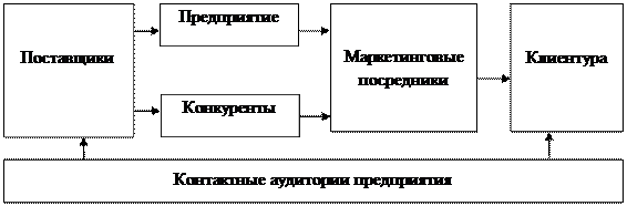 Рис. 1. Основные факторы маркетинговой микросреды компании 1.Поставщики - это деловые фирмы и отдельные лица, обеспечивающие предприятие всеми ресурсами необходимыми для производства конкретных видов товаров. Сдачу нефти в систему магистральных нефтепроводов ОАО «УСМН» осуществляют: ОАО «АНК Башнефть», ООО «Лукойл-ПЕРМЬ», ООО «Белкамнефть», ОАО «Оренбургнефть» и др. 2.Маркетинговые посредники – это фирмы, занимающиеся продвижением, сбытом и распределением товаров среди клиентуры. 1)торговые посредники: Существует немалое число фирм-посредников, но в последнее время компания старается заключать прямые договора с конечными потребителями. 2)Фирмы-специалисты по организации товародвижения: Т.к. компания непосредственно занимается трубопроводным транспортом нефти, то такими фирмами являются подразделения ОАО «УСМН», как приемо-сдаточные пункты и нефтепроводные управления, обеспечивающие бесперебойную работу магистральных нефтепроводов, прием, сдачу нефти конечным потребителям. 3)Агентство по оказанию маркетинговых услуг: Для рекламных целей предприятием используются СМИ: публикации в ежемесячных производственно-технических журналах, издается собственный журнал «Нефтяная магистраль», личный сайт компании www.usmn.ru. 4)Кредитно-финансовые учреждения: Банки-«Стройкредитбанк», «Сбербанк»; Страховые организации-«СК Транснефть». 3.Клиентура - может выступать на 5 типах клиентурных рынков. ОАО «УСМН» занимается перекачкой нефти в основном для организаций, приобретающих товар для его последующего использования в процессе производства, т.е. для рынка производителей, а также для производителей зарубежных стран, т.е. международного рынка. 4.Конкуренты Для изучения конкурентов, в первую очередь, необходимо определить тип рынка, на котором функционирует предприятие. Различают 4 типа рыночных структур: чистая конкуренция, монополистическая конкуренция, олигополия, монополия. ОАО «УСМН» относится к типу олигополия. После определения конкурентной среды необходимо рассмотреть имеющихся конкурентов с позиции покупателя, используя следующие виды конкуренции: 1)желания-конкуренты: Потребитель(в нашем случае НПЗ) хочет получить сырье. 2)товарно-родовая конкуренция: Существует несколько способов удовлетворения желания потребителя: - трубопроводный транспорт - железнодорожный транспорт - автомобильный транспорт - водный транспорт 3)товарно-видовая конкуренция: Согласно строительным нормам и правилам(СНиП), магистральные нефтепроводы подразделяются на 4 класса в зависимости от условного диаметра труб(мм): 1- 1000-1200включительно, 2- 500-1000вкл., 3- 300-500вкл., 4- 300 и менее. 4)марки-конкуренты: В нашем случае, конкуренция между различными компаниями трубопроводного транспорта, в случае АК «Транснефть» - АО «КазТрансОйл», ОА «Транспетрол», «ТНК-ВР» и др. 5.Контактные аудитории Искомые аудитории: Основными аудиториями финансовой сферы для ОАО «УСМН» являются банки, инвестиционные компании, акционеры. Компания добивается благорасположения этих аудиторий, так как в банках может получить кредиты, инвестиционные компании могут делать необходимые для компании инвестиции. Поэтому компании необходимо систематически представлять финансовому сообществу доказательства своей финансовой устойчивости, то есть публиковать годовые отчеты, давая ответы на