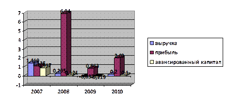Проведём оценку прибыльности. Она включает: 1. Прибыль. Чистая прибыль (ЧП) – это прибыль, остающаяся в распоряжении предприятия. Прибыль повышается в 2008, но вновь снижается в 2009 году, скорее всего это снижение связанно с финансовым кризисом. В 2010 году она снова повышается это свидетельствует о успешном преодолении кризиса. 2. Общая рентабельность показывает какую часть от выручки от реализации составляет прибыль до налогообложения, анализируется в динамике и сравнивается со среднеотраслевыми значениями этого показателя. В 2008 году показатель повышается с 0,019 до 0,1, а потом снижается до 0,021. В 2010 году снизился до 0,06. 3. Рентабельность основной деятельности позволяет судить, какую прибыль дает каждый рубль производственных затрат. На данном предприятии этот показатель отрицателен. Это означает, что прибыль на предприятии меньше, чем затраты. Оценка динамичности включает 1.Сравнительные темпы роста выручки, прибыли, авансированного капитала; Темп роста – относительные, статистические или плановые показатели, характеризующие интенсивность динамики явления. Диаграмма 1:Динамика темпов роста