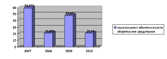 2.Коэффициент задолженности по кредитам банков и займам вычисляется как частное от деления суммы долгосрочных пассивов и краткосрочных кредитов банков и займов на среднемесячную выручку В «ПАТП – 1» данный показатель в 2008 году снизился от 77,478 до 50,01, а в 2009 году опять повысился в 2,2 раза, в 2010 снова снизился и достиг 43,334 3.Коэффициент задолженности другим организациям вычисляется как частное от деления суммы обязательств по строкам "поставщики и подрядчики", "векселя к уплате", "задолженность перед дочерними и зависимыми обществами", "авансы полученные" и "прочие кредиторы" на среднемесячную выручку. Все эти строки пассива баланса функционально относятся к обязательствам организации перед прямыми кредиторами или ее контрагентами. Коэффициент задолженности другим организациям в 2008 году по сравнению с 2007 годом уменьшился на 46,793, в 2009 году увеличилась на 51,666, а в 2010 снизился на 54 4. Коэффициент задолженности фискальной системе вычисляется как частное от деления суммы обязательств по строкам "задолженность перед государственными внебюджетными фондами" и "задолженность перед бюджетом" на среднемесячную выручку. Коэффициент задолженности фискальной системы в 2008 году снизилась с 0,887 до 0,387, но в 2009 году снова значительно повысилась на 4,391, а в 2010 снова упал на 3,89 5. Коэффициент внутреннего долга вычисляется как частное от деления суммы обязательств по строкам "задолженность перед персоналом организации", "задолженность участникам (учредителям) по выплате доходов", "доходы будущих периодов", "резервы предстоящих расходов", "прочие краткосрочные обязательства" на среднемесячную выручку. Коэффициент внутреннего долга в 2008 году снижается, а в 2009 вновь увеличивается, то есть внутренний долг ОАО «ПАТП – 1»снова повысился. В 2010 году данный коэффициент составляет 1,67. 6. Степень платежеспособности по текущим обязательствам характеризует ситуацию с текущей платежеспособностью организации, объемами ее краткосрочных заемных средств и сроками возможного погашения текущей задолженности организации перед ее кредиторами. Степень платёжеспособности по текущим обязательствам совпадает со значениями степени платежеспособности общей. 7. Коэффициент покрытия текущих обязательств оборотными показывает, насколько текущие обязательства покрываются оборотными активами организации. Снижение данного показателя за анализируемый период свидетельствует о снижении уровня ликвидности активов или о росте убытков организации. Коэффициент покрытия текущих обязательств оборотными активами с 2007 года по 2009 года снижается с 0,395 до 0,251 ото происходит в связи с тем, что увеличиваются текущие обязательства организации, а в 2010 году данный показатель увеличивается до 0,33 8. Собственный капитал. Наличие собственного капитала в обороте (собственных оборотных средств) является одним из важных показателей финансовой устойчивости организации. Отсутствие собственного капитала в обороте организации свидетельствует о том, что все оборотные средства организации, а также, возможно, часть внеоборотных активов (в случае отрицательного значения показателя) сформированы за счет заемных средств (источников). Собственный капитал в обороте с 2007 по 2009 является отрицательным и постепенно снижается на 6934 в 2010 данный показатель возрастает на 1225 но несмотря на это остаётся