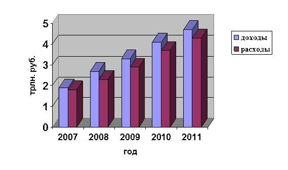 Рисунок 1 - Структура доходов и расходов бюджета ПФ РФ 2.2 Направления использование средств Пенсионного фонда РФ в 2007 – 2011 гг.