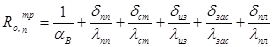 Исходя из формулы для определения сопротивления теплопередаче для многослойных ограждающих конструкций