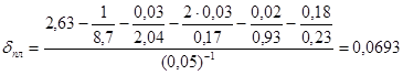 δе,min = 0,5 – 0,01 ∙ 20,25 – 0,01 ∙ 9,35 = 0,204 > δе = 0,14, принимаем δе = 0,204. ψе