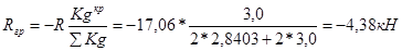 = NI-I = 11,52 + 58,1 = 69,62 кН В) QI-I = -7,015 * 0,0275 = 0,153 кН. 7. Горизонтальная крановая нагрузка Т = 3,75 кН слева направо. Горизонтальная реакция при торможении слева направо: Rв = к3 * Т = 0,71 * 3,75 = 2,6654 кН, где к3 = 0,71 по таб. 3 п VII для. n = 0,25; λ= 0,26 и yв = 1,95 / 2,9 * Нв ≈ 0,67 Нв А) МI - I = - 3,75 * 9,05 + 2,6654 * 11= - 4,6181 кН*м ; МII - II = - 3,75 * 9,05 + 2,6654 * 2,9 = 4,1672 кН*м ; МII - II = 4,1672 кН*м ; МIII - III = 0 . Мт = 2,6654 * 1,95 = 5,1975 кН*м. Б) N= 0 N В) QI - I = Т - Rв = 3,75 – 2,6654 = 1,0846 кН. 7. Ветровая нагрузка слева направо. По табл. 4 находим кт = 0,3574. Горизонтальня реакция Rв в крайней колоне на оси О: Rв 0 = к7 * gотс * Н = 0,3574 * 1,25 * 11 = 4,9148 кН. Горизонтальная реакция Rв в крайней колонне по оси А: Rв л = к7 * gотс * Н = 0,3574 * 0,93 * 11 = 3,657 кН. Усилие в дополнительной связи. R = ∑ Rв * W = 4,9148 + 3,657 + 8,49 = 17,06 кН. Определяем по табл. 5 п. VII коэффициенты Kqкр = 2,8403 и Kqср = 3,0. Горизонтальная сила на крайние колонны: