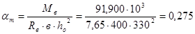 Сечение арматуры As и As ’ назначаем конструктивно по µmin =µ’ min = 0,2% (по гибкости λi = 77 в пределах 35…83), тогда Аs = Аs ’ = 0,002 ∙ 400 ∙550 = 440 мм2 . Принимаем 2ф18А – III с Аs = Аs ’ = 509 мм2 (+ 10,2%) с каждой стороны сечения. б) Для второй комбинации усилий δ = 0,091; αm