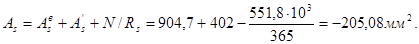е = 1,652 ∙ 0,061 + 0,38/2 – 0,05 = 0,241 м. 4. Определение сечения арматуры. М = 33,74 кН∙м; N = 551,8 кН; SR = 0,611; e = 0,241 м. As