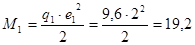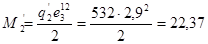 Рис. П.2.8. Расчетная схема и эпюра моментов для колонны при монтаже. Погонная нагрузка от веса колонны с учетом коэффициента динамичности 1,4: