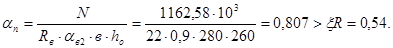К = (αs + ψc ∙ αs – αn ) / 2 = (0,369 + 3,68 ∙ 0,369 – 0,807) / 2 = 0,460 ξ = δ = a’ / ho = 40 / 260 = 0,154; Площадь сечения симметричной арматуры: