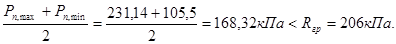 Из неравенства видно, что необходимо увеличить размеры подошвы фундамента: е = 2,7 м; в = 2,4 м с А =2,7 ∙ 2,4 = 6,48 м2 . Рn
