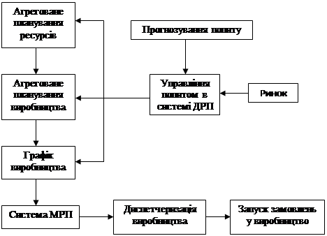 Мал.5. Взаємодія систем МРП та ДРП Система ДРП є базою планування логістичних та маркетингових функцій та їх ув'язування. Вона дає змогу прогнозувати з тією чи іншою мірою достовірності ринкову кон'юнктуру, оптимізувати логістичні витрати за рахунок скорочення витрат транспортних та на рух товару. Планують також поставки й запаси на різних рівнях ланцюга розподілу (центральний — периферійні склади). У системі ДРП здійснюється інформаційне забезпечення різних рівнів ланцюга розподілу з питань ринкової! кон'юнктури. Важливою функцією ДРП є планування транспортних перевезень. У системі обробляються заявки на транспортне обслуговування, складаються заявки та коригуються в реальному масштабі часу графіки перевезень. На основі дострокових планів роботи складів розраховують потреби в транспортних засобах, коригують потреби з урахуванням оперативної обстановки. Основою бази даних системи ДРП є інформація про продукцію, що перевозиться та складується і надходить від заводу-виробника, а також інформація зі складів. Певний досвід практичного застосування логістики є в Росії. На першому семінарі з логістики було повідомлено про логістичну систему «Ритм», у якій розглядаються матеріальні потоки між підприємствами добувної промисловості та металургійними і комбінатами чи ТЕЦ за участю посередника — залізничного, транспорту. Між такими підприємствами існують стійкі зв'язки в масовому перевезенні сировини. Для таких перевезень характерні, як правило, велика нерівномірність надходження порожніх вагонів для завантаження та завантажених для розвантаження, що потребує від підприємств додаткового парку механізмів та штату вантажників, великих складських площ. Невпевненість у своєчасності поставки сировини примушує одержувачів створювати її страховий запас, щоб уникнути збоїв в основному технологічному процесі, не допустити простою дорогого устаткування. Свою складську базу розвивають також вантажовідправники, що «звикли» неритмічно одержувати порожні вагони під завантаження і змушені в багатьох випадках працювати не за прямим варіантом. Отже, періодично то в постачальників, то в споживачів виникають наднормативні запаси, а тому здійснюються повторні вантажні операції, знижується якість продукції. Однак і залізничники змушені мати свої «склади-буфери», роль яких виконує технологічний резерв вагонів на станції. Ці «буфери» амортизують вагоно- чи вантажопотік, який нерівномірно надходить від підприємств, відправників і одержувачів. Як свідчить аналіз, усі учасники цього технологічного ланцюга мають невиробничі втрати та не задоволені роботою один одного. Для розглядуваних підприємств поняття своєчасності перевезень зводиться передусім до ритмічності чи рівномірності доставки вантажів. На перший погляд, розв'язання цієї проблеми здається досить простим і полягає У здійсненні перевезень маршрутними поїздками за жорстким графіком. Це й вирішили концептуально закласти в основу єдиної міжгалузевої технології. В ній були взаємопов'язані між собою графіки руху поїздів (названих технологічними; маршрутами), робота станцій та підприємств. Норми маси й довжини таких маршрутів встановлюють за погодженням з підприємствами та залізницями, що беруть участь у єдиній технології. Єдине обмеження при цьому — маса поїзд