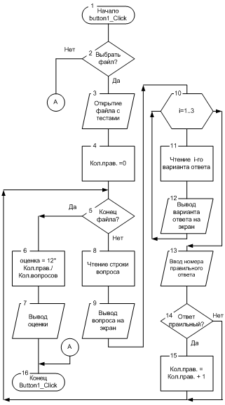 Рисунок 2.1 – Алгоритм программы компьютерного тестового контроля знаний студентов