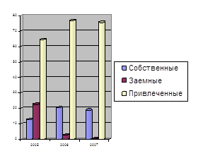 Нераспределенная прибыль в 2005 году составляла 1241 тыс. руб., а в 2007 году увеличилась до 4902 тыс. руб., что на 6% больше. Заемные средства представлены краткосрочными кредитами и займами. Они занимают 22,6% в 2005 году, и резко снизились к 2007 году до 0,6% от общей суммы пассивов/обязательств. За три года этот показатель уменьшился с 6233 тыс. руб. до 153 тыс. руб. Итого пассивы/обязательства за анализируемый нами период увеличились в 2,5 раза. В 2005 году они составляли 9673 тыс. руб., а к 2007году стали равняться 26015 тыс. руб. Все это отображено на рис. 3.