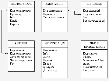 Рисунок 2.4 – Зв’язок “Користувачі – Рейтинг” На основі структурних зв’язків будуємо інфологічну модель, яка наведена на рисунку 2.5.