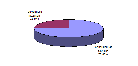 Как показывают данные таблицы 3, если в 2008 году отмечен прирост объема реализации продукции и товаров, то в 2009 году спад объемов реализации составил 22,40%, что связано с негативным влиянием на деятельность предприятия финансово – экономического кризиса. При этом необходимо отметить, что спад объемов реализации в основном затронул гражданскую продукцию предприятия, по которой снижение продаж в 2009 году составило 45,10%. Спад объемов производства и реализации авиационной техники составил в 2009 году 10,65%. Рассмотрим структуру выручки от продаж продукции (см. рисунки 1,2 и 3).