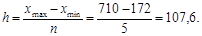 Слід зазначити, що нижні межі інтервалів ми будемо включати до інтервалу, а верхні – ні. В інтервал 602,4 – 710 включаємо обидві межі. В багатьох випадках кількість інтервалів та ширину інтервалу дослідник визначає сам. Інтервали можуть бути відкритими та закритими. Наприклад, виконаємо теж завдання, але сформуємо чотири інтервали: До 200; 200 – 400; 400 – 600; 600 і більше. Таблиця 4.