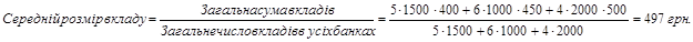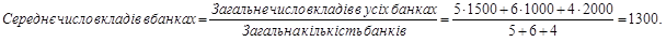 Визначити в цілому по місту: a) середню кількість банків; b) середнє число вкладів в банки; c) середній розмір вкладу; d) середню суму вкладів в банках. Розв’язання. В даному випадку середні значення показників обчислюватимемо за формулами середньої арифметичної. Для розв’язання задачі в кожному випадку починатимемо з логічної формули розрахунку середньої.