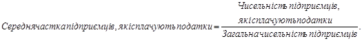Визначити у середньому за всіма видами діяльності частку підприємців, які сплачують податки. Розв’язання. Запишемо логічну формулу: Але ми не маємо даних щодо загальної чисельності підприємців. Тобто використати середню арифметичну ми не можемо. В цьому випадку потрібно застосувати формулу середньої гармонічної: