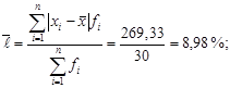 За кожний квартал визначити середню кредитну ставку, середнє лінійне відхилення, дисперсію та середньоквадратичне відхилення. Порівняти варіацію кредитної ставки комерційних банків в Iта II кварталі. Розв’язання. Наведемо необхідні для розрахунку формули: Середня арифметична Таблиця 16.