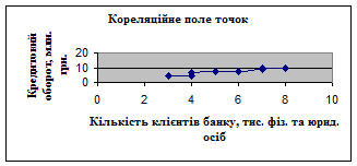 Постільки значення коефіцієнта детермінації близьке до одиниці, то можна вважати, що побудована модель адекватна тобто зв’язок між кредитовим оборотом та чисельністю клієнтів банку істотний. ( Інший критерій істотності зв’язку – критерій Фішера. Він використовується найчастіше і дає відповідь на питання щодо адекватності моделі, коли значення коефіцієнта детермінації має не явно виражене граничне значення, наприклад, 0,5: 0,45: 0,44 і ін. Перевірка моделі на адекватність за F – критерієм Фішера складається з таких етапів: 1. Розраховуємо величину F
