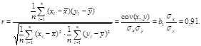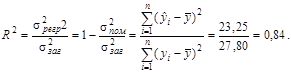 Перша частина цього виразу являє собою частину дисперсії, яку не можна пояснити через регресійний зв’язок, друга - частину дисперсії, яку можна пояснити, виходячи з регресії. Вона називається коефіцієнтом детермінації і використовується як критерій адекватності моделі, бо є мірою пояснювальної сили незалежної змінної: