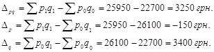 За рахунок зміни цін на товари величина товарообігу зменшилась на 150 грн., а за рахунок зміни обсягів - збільшилася на 3400 грн., що в загальному склало збільшення товарообігу на 3250 грн. 2. Дані про динаміку випуску та цін трьох товарів – представників продукції галузі вміщено в таблиці: Таблиця 29.