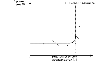 Рис.1 Кривая совокупного предложения Где: 1 - Горизонтальный участок 2 - Промежуточный участок 3 - Вертикальный участок Если правительство ставит задачу борьбы с инфляцией, то проводится ограничительная политика, ведущая к сдерживанию производства, а, следовательно, к росту безработицы. Если же правительство ставит задачу борьбы с безработицей, проводится стимулирующая политика, которая, однако, приводит к инфляции. То есть низкая безработица не может сочетаться с низкой инфляцией. Но когда речь идет о естественном уровне безработицы, внутренне присущем экономической системе, такая взаимосвязь не наблюдается. Естественный уровень безработицы необходим. Это низкая безработица, которая в то же время никак не влияет на инфляцию. Будучи внутренней потребностью рынка труда, она не ускоряет инфляцию. Естественный уровень безработицы имеет конкретные показатели. Для развитой страны естественный уровень безработицы составляет в среднем 4—5%. Эта цифра может меняться, поскольку на величину естественного уровня безработицы влияет ряд факторов: • социальная политика государства (высокие социальные пособия увеличивают естественный уровень за счет роста фрикционной безработицы: люди могут себе позволить дольше быть безработными); • психологические установки населения, характеризующие склонность к занятости (это может быть связано с историческими, национальными, региональными особенностями); • изменение демографического состава рабочей силы (в составе рабочей силы становится больше женщин, молодежи, а это лица, для которых наблюдается высокий уровень фрикционной безработицы: декретные отпуска, обучение и т.д.) и т.п. Естественная безработица характеризует наилучший для экономики резерв рабочей силы, способной достаточно быстро совершать межотраслевые и межрегиональные перемещения в зависимости от колебаний спроса и обусловленных им потребностей производства. Фрикционная безработица Фрикционная безработица существует во всех странах с рыночной системой хозяйствования, даже в странах, переживающих бурный экономический расцвет, и связана с изменениями в предложении рабочей силы. Ее причина состоит в том, что работнику, уволенному со своего предприятия или покинувшему его по своей воле, требуется некоторое время для того, чтобы найти новое рабочее место. Одна категория работников ищет подходящую работу, так как прежняя ее не устраивает по определенным параметрам (заработная плата, условия труда и т.д.), другая по причине получения образования или перемене места жительства, третьи впервые выходят на рынок труда, то есть инициатива увольнения исходит от самого человека. Главная особенность фрикционной безработицы то, что она является добровольной и связана со свободой выбора профессии, места и времени работы. В результате безработицы подобного вида многие люди находят себе более достойное применение, решают вопросы повышения уровня оплаты труда и его содержательности, большей продуктивности а, следовательно, и большей эффективности для общества за счет более рационального распределения ресурсов для труда. Фрикционная безработица кратковременна, не более одного – двух месяцев. В экономически развитых странах такой вид безработицы находится на уровне 3–6% от числа экономически активного населения. Фрикционная бе