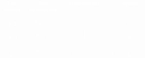 .Методология построения теории времени естественных объектов, детально изложена [1, 2]. В данной работе рассмотрены компоненты этой теории на примере клеточной популяции. 1. Структура клеточной популяции. (O -компонент теории, object ). Первая проблема состоит в выборе составных частей (элементов, таксонов, униструктур) объекта и определении их пространственных границ [3, 4]. Принципиальная трудность состоит в том, что строгий критерий членения объекта на части отсутствует. Выделение объектов природы – идеализация, связанная, главным образом, с особенностями информационных взаимодействий живых организмов со средой [5]. Объективным критерием членения объекта может служить принцип энергетической дифференцировки [6], который можно записать в виде: Еj+1 << Еj , где Еj , Еj+1 — прочность связи между элементами уровня j и между элементами более высокого уровня j+1 (схема 1). Для клеточной популяции порядок элементов с усложнением уровня (цифры - номера j уровней) можно представить в виде: 1 молекулы(t m )I 2 органеллы(t o ) I 3 клетки (t c ) I 4 популяция(t p ) I 5 экосистема(t e ) (1) Каждый уровень j разбивается на подмножества элементов (схема 1). Схема 1. Иерархия подсистем естественных объектов