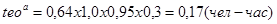 где tео – нормативная трудоемкость ежедневного обслуживания (чел.-час) К2 – коэффициент корректирования нормативов в зависимости от количества обслуживаемых и ремонтных автомобилей на АТП и количества совместимых технологических групп подвижного состава – 1,0 К5=0,95 Км(ео) – коэффициент механизации, снижающий трудоемкость ЕО; Рассчитываем по формуле: