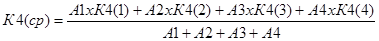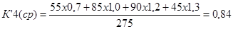 где А1, А2, А3. А4 – количество автомобилей, входящих в группу с одинаковым пробегом с начала эксплуатации; К4 (1), К4 (2), К4 (3), К4 (4) – величина коэффициентов корректирования для составления групп с одинаковым пробугом;