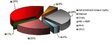 Специалисты отмечают, что структура Российского рынка труб для отопления водоснабжения будет сильно отличаться от европейского. Структура Российского рынка труб для отопления водоснабжения, 2007
