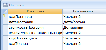 Рисунок 4 – Структура таблицы «Поставка» в режиме конструктора