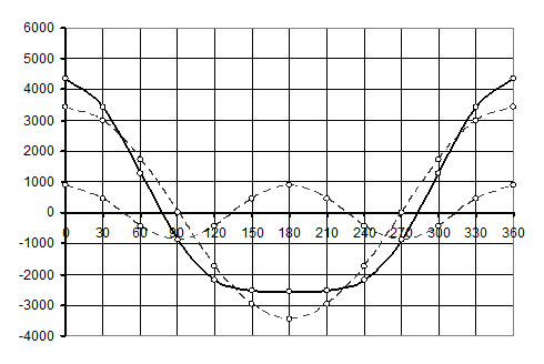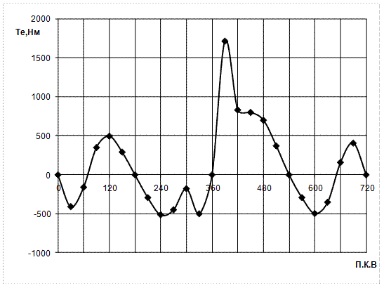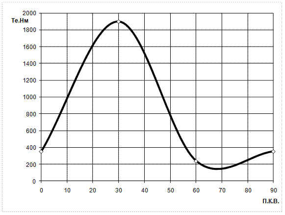 Рис.4. Диаграмма вращающего момента одного цилиндра двигателя