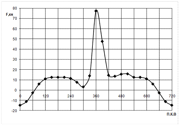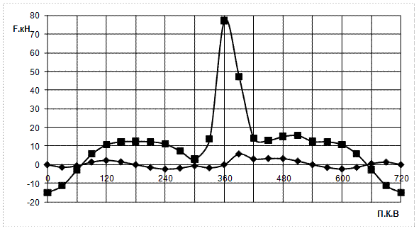 Результаты расчета сводятся в табл. 10. Таблица 10 Расчет сил, действующих в КШМ двигателя