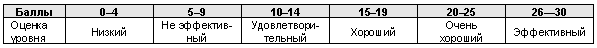 Таблица 2. Шкала оценки эффективности маркетинга