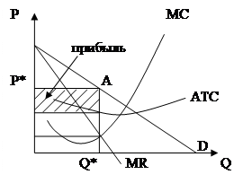 . Здесь он имел бы экономическую прибыль, равную заштрихованному прямоугольнику.