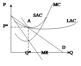 Точка А – точка долгосрочного равновесия, где p = 0 (p - прибыль).