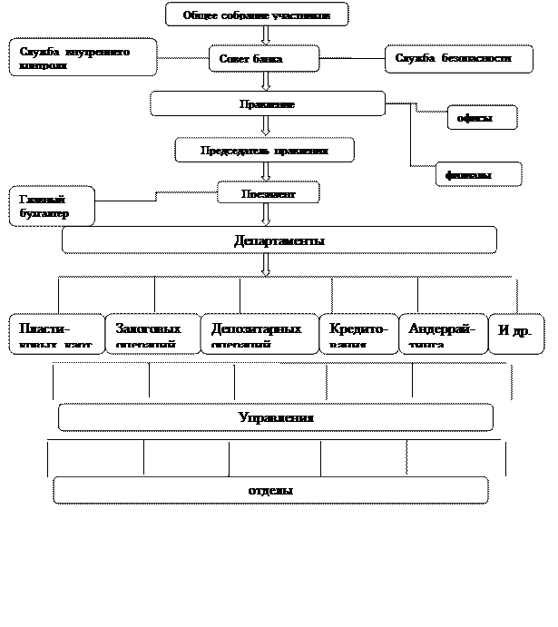 СОДЕРЖАНИЕ ГЛАВА 1. Общая характеристика коммерческого банка «Юниаструм Банк» (ООО) 4 1.1. Краткие сведения о банке. 4 1.2. Организационная структура и органы управления «Юниаструм Банка» (ООО) 5 1.3 Политика и стратегия развития банка. 7 2.1. Сущность и понятие андеррайтинга в банке. 9 2.2. Процедура андеррайтинга в КБ «Юниаструм Банк» (ООО) 10 ГЛАВА 3. Экспресс-анализ деятельности КБ «Юниаструм Банк» (ООО) 15 3.1. Анализ отдельных показателей деятельности банка. 15 3.2. Оценка результатов деятельности банка. 21 Список использованной литературы.. 26 В ВЕДЕНИЕПроизводственная практика является обязательной частью учебного процесса, основной целью которой является закрепление и углубление теоретических знаний, накопленных студентом за период обучения. При этом студент формирует необходимые для будущей профессиональной деятельности умения, навыки и личностные качества. В период с 07.06.2010 г. по 16.07.2010 г. была пройдена практика в банке «Юниаструм Банк» (ООО) в Департаменте андеррайтинга розничных кредитов (автокредитования), с целью получения навыков и умений в области банковского дела, финансов и других аспектов деятельности организаций. За время работы познакомилась с работой Банка в целом и со спецификой деятельности Департамента андеррайтинга розничных кредитов (автокредитования) (далее ДАРК). Мои функциональные обязанности заключались в следующем: – подготовка заявок на автокредитование к отправке их в архив; – формирование архива; –уничтожение документов, содержащих конфиденциальную информацию, которая не требуется для хранения в архиве (она содержится в базе данных банка); – ведение базы данных по архивным делам. ГЛАВА 1. ОБЩАЯ ХАРАКТИРИСТИКА КОММЕРЧЕСКОГО БАНКА «ЮНИАСТРУМ БАНК» (ООО)1.1. Краткие сведения о банкеНаименование Банка