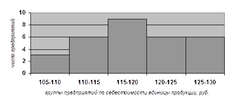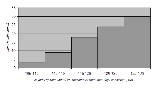 Рис. 1. Гистограмма распределения предприятий по уровню себестоимости единицы продукции