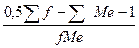 где х о - нижняя граница модального интервала; ƒМо – частота модального интервала; ƒМо-1 – частота интервала, предшествующего модальному; ƒМо+1 – частота интервала, следующего за модальным. Мо = Рассчитаем медиану по формуле: Ме =