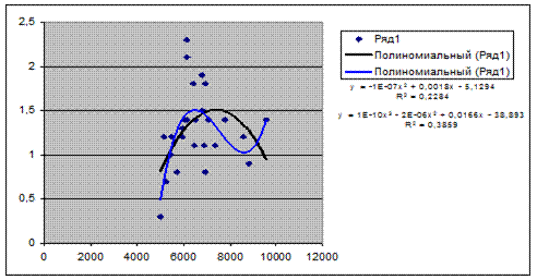 2. Вид регрессионной модели – полиномиальная 3-й степени: Диаграмма 2.1