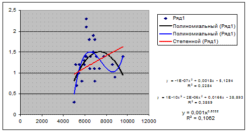 Выбор наиболее адекватного уравнения нелинейной регрессии определяется максимальным значением коэффициента R2 : Диаграмма 2.2