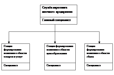 Рис.2 Структура службы маркетинга Для аптечных предприятий можно рекомендовать вариантное построение организационной структуры службы маркетинга в зависимости от объема реализации товаров, широты номенклатуры и от географического размещения потенциальных рынков. Как обобщенный вариант маркетинговой службы аптечного предприятия можно предложить структуру из трех самостоятельных секций. Осуществлять маркетинг в аптечном предприятии должны специалисты - провизоры-маркетологи, возглавляемые главным маркетологом (директором по маркетингу). 3. Определение позиционированияПозиционирование – направление маркетинговой деятельности по выбору целевых рынков, предполагающее анализ элементов комплекса маркетинга и позиции продуктов на выделенных сегментах рынка с целью выявления тех их параметров, которые способствуют завоеванию конкурентных преимуществ. Если все предприятия будут выпускать одни и те же продукты с одинаковыми характеристиками, использовать одни и те же методы продвижения и доставки продукта, оказывать аналогичные сервисные услуги, то для потребителей они все будут одинаковыми. Неверно думать, что позиционирование – это физическое занятие определённого места на рыночной площади. Позиция товара – это мнение потребителей по важнейшим параметрам продукта. Оно характеризует место, занимаемое конкретным товаром в умах потребителей по отношению к товарам конкурентов. Позиция формируется на основе измеряемых количеством параметров: доля рынка, объёмы продаж, действующие на данном сегменте цены и т. п. Анализ и учёт возможностей фирмы позволяет ей выбрать такие характеристики продукта и элементов комплекса маркетинга, которые могут в выгодную сторону отличать её продукты от продуктов конкурентов, т. е. проводить дифференциацию собственных рыночных предложений. 4. Проникновение в сегментированные области рынкаПосле того, как фирма осуществила сегментирование потребительского рынка и выбрала наиболее приемлемые для неё сегменты, необходимо обеспечить собственно проникновение на эти сегменты, занять там определённую позицию . Наиболее выгодный сегмент должен обладать, во-первых, высоким уровнем сбыта продукции, во-вторых, высокими темпами роста продаж, в-третьих, высокой нормой прибыли, в-четвёртых, слабой конкуренцией и, в-пятых, несложными требованиями к каналу сбыта. Как совершенно правильно замечает Ф. Котлер, “ни один из сегментов не отвечает, в полной мере, всем этим характеристикам”, отсюда – альтернативные выгоды, компромиссы, установка на скромные на первых порах результаты коммерческой деятельности. Высокий уровень сбыта продукции возможен тогда, когда фирма располагает достаточными сырьевыми и иными ресурсами, владеет необходимыми технологиями и способна производить качественный товар или оказывает на соответствующем уровне какие-либо услуги. Но и этого мало. Важно ещё иметь разветвлённую сеть каналов распределения товаров, средства доставки товаров к местам продажи, а также высококвалифицированный персонал. Рост темпов продажи зависит также от ряда факторов: качества предлагаемых к реализации товаров, их ассортимента, цены, умелого своевременного рекламирования, оперативной доставки товаров к местам продажи или клиентов к местам потребления услуг. Рост прибыли возможен т