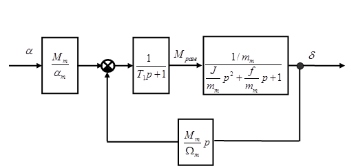 Рис 1.7.4 1.8 Математическая модель рулевого привода Для проектирования управляющей части и для расчета динамических характеристик привода будем использовать модель РП, состоящую из следующих элементов: 1. Исполнительный двигатель, описываемый следующей системой уравнений: